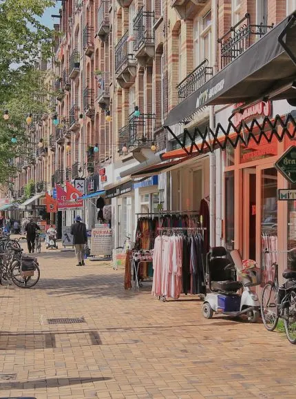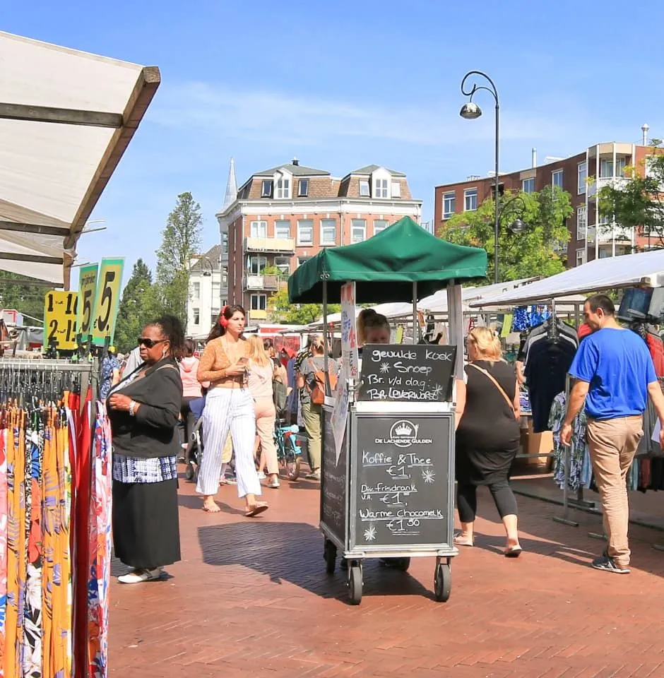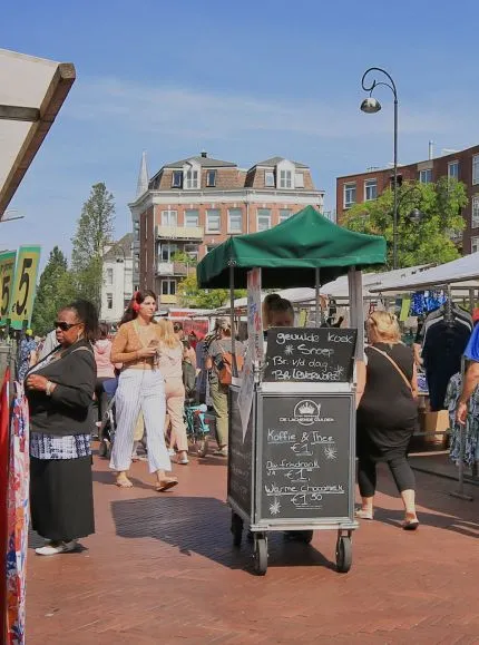 Even verderop ligt de Dappermarkt, een van de bekendste markten van de stad. Met zo’n 200 kramen vol verse producten, kleding en exotische lekkernijen is het een geliefde plek voor buurtbewoners én dagjesmensen.